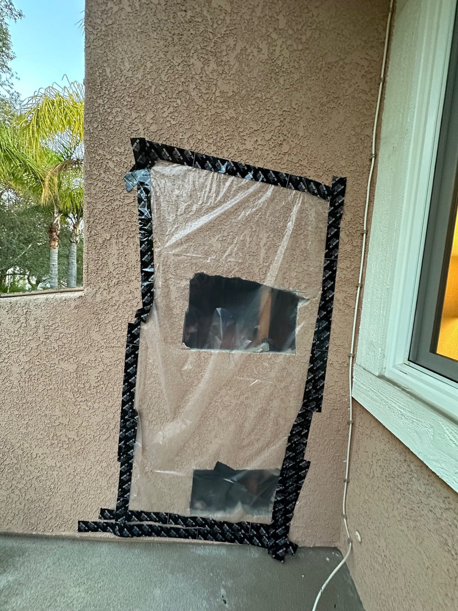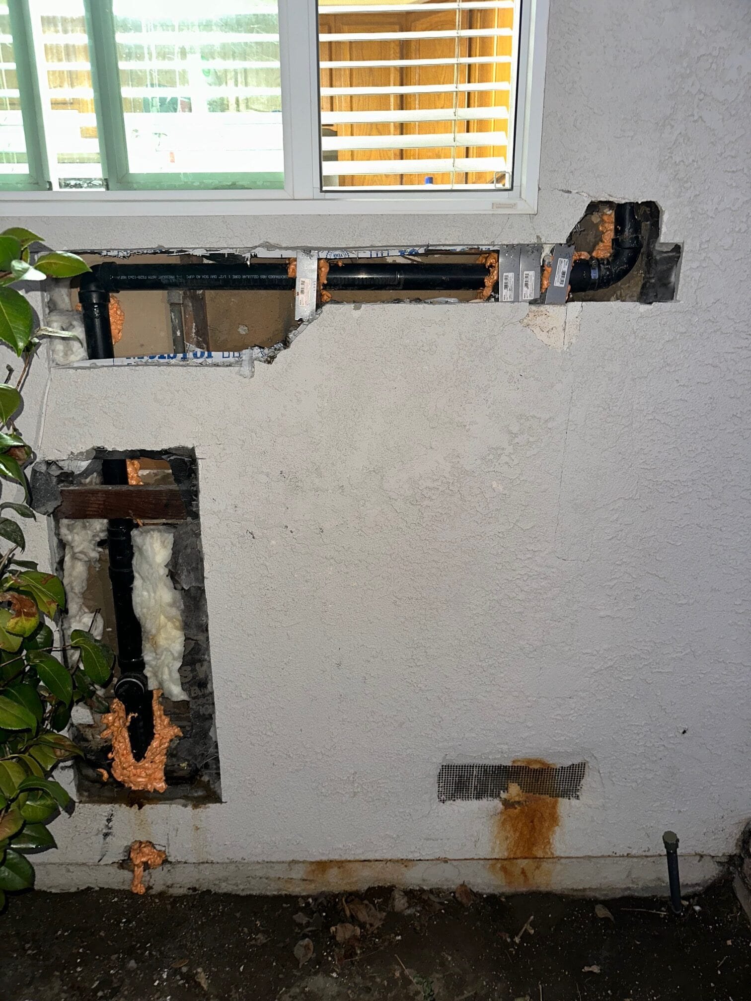 plumbing pipe repair and stucco patching